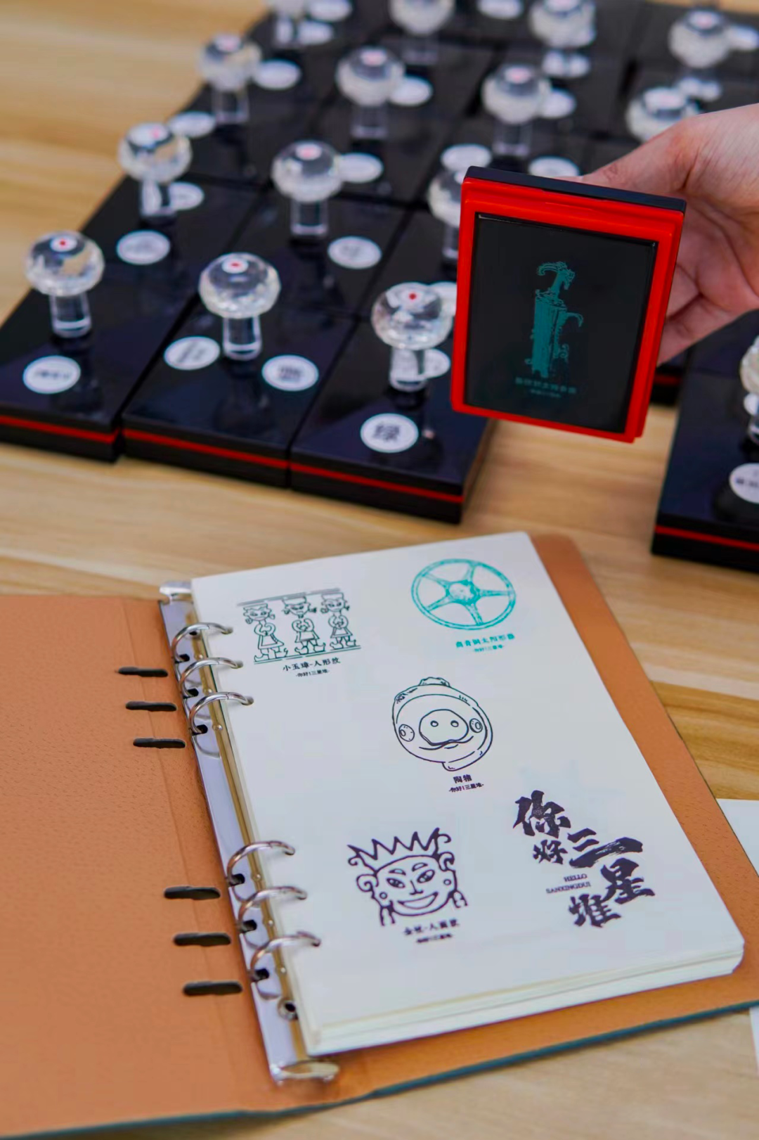 另外,各种各样三星堆的正版衍生品也能让你过一把考古瘾!当一件文物被亲手从迷你版土堆里挖掘现身,成就感满满~另外喜欢盖章的小伙伴亦可以准备好空白小本,100个免费印章多数都是三星堆文物,极具纪念意义!